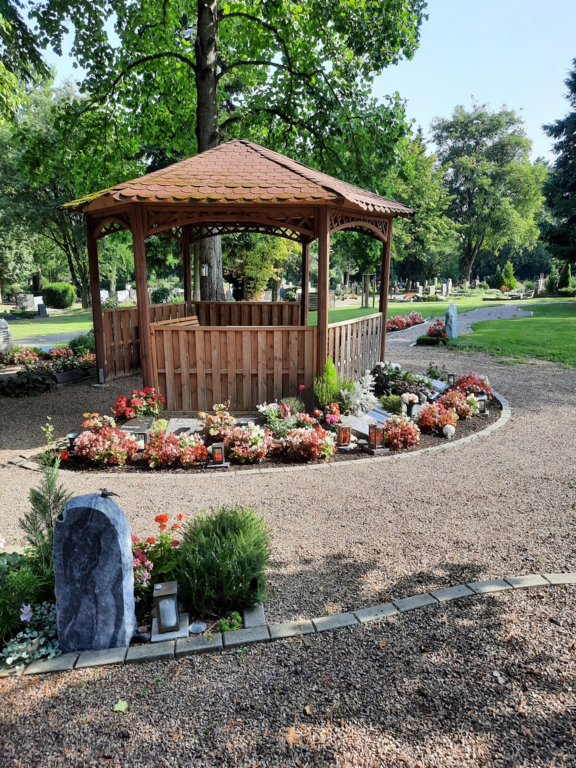 Bepflanzung, Grabpflege und Grabmalpflege werden von zugelassenen Fachbetrieben übernommen.